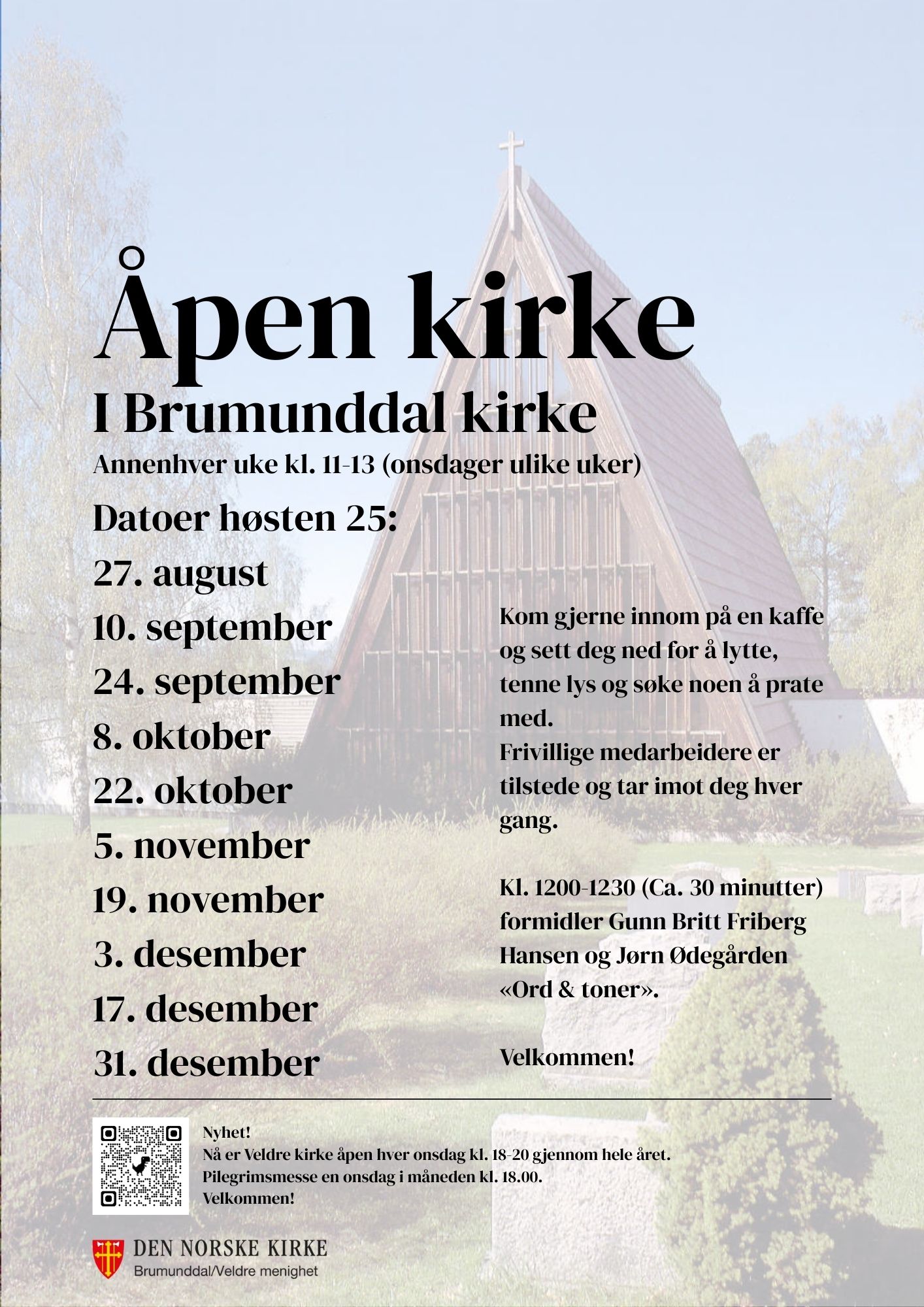Åpen kirke arrangeres i Brumunddal og Veldre kirker.
